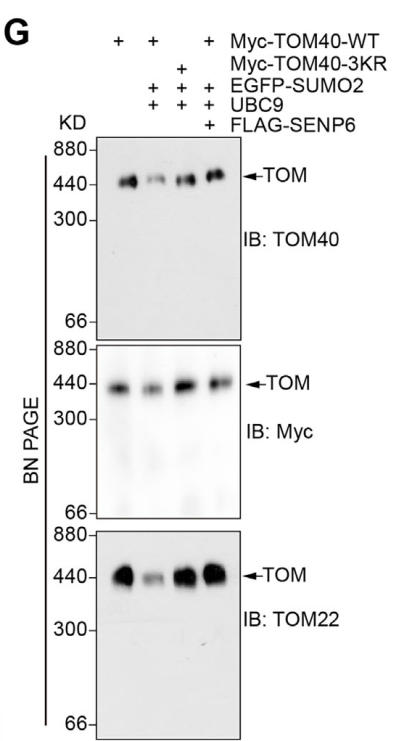 SUMO化是一種可逆的翻譯后修飾,調(diào)控著各種線粒體過程,包括生物合成、動力學、線粒體自噬和線粒體未折疊蛋白反應(yīng)。盡管已證實SUMO化是由酵母中的線粒體蛋白質(zhì)輸入障礙引發(fā)的,但其對哺乳動物線粒體蛋白質(zhì)輸入的影響仍不清楚。