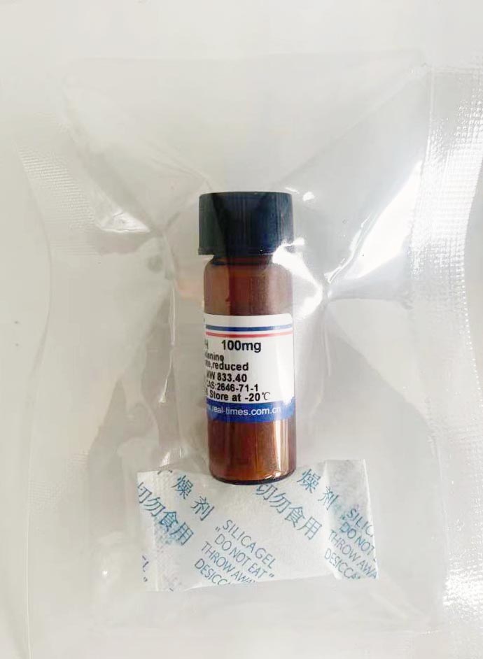 含有25 mg NADPH粉末玻璃瓶中加入0.5 ml或1 ml 10 mM Tris-HCl pH8.0,徹底溶解,即配成50 mg/ml(60 mM)或25 mg/ml(30 mM) NADPH溶液;溶液-20℃可以貯存2周,-80℃可以貯存2個(gè)月。可以根據(jù)需要適量分裝成小管-80℃貯存,每次取一管使用,避免污染和減少凍融次數(shù)。