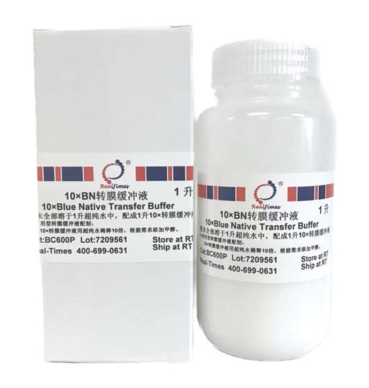 10×BN轉膜緩沖適用于BN蛋白電泳后凝膠上非變性蛋白的轉膜。本轉膜液配制便捷,稀釋后無需調節pH值,pH約為7.5-7.7。該緩沖液最終可配成10升即用型1×緩沖液(根據需求補加甲醇)。