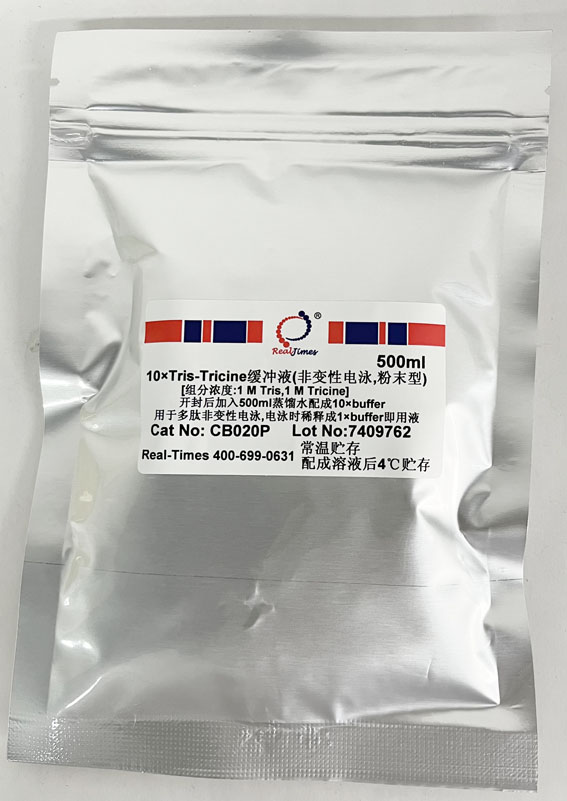 說明:開封后將全部干粉溶于500ml蒸餾水中即配成10×Tris-Tricine緩沖液,電泳時稀釋成1×緩沖液即用液,不要調節pH。