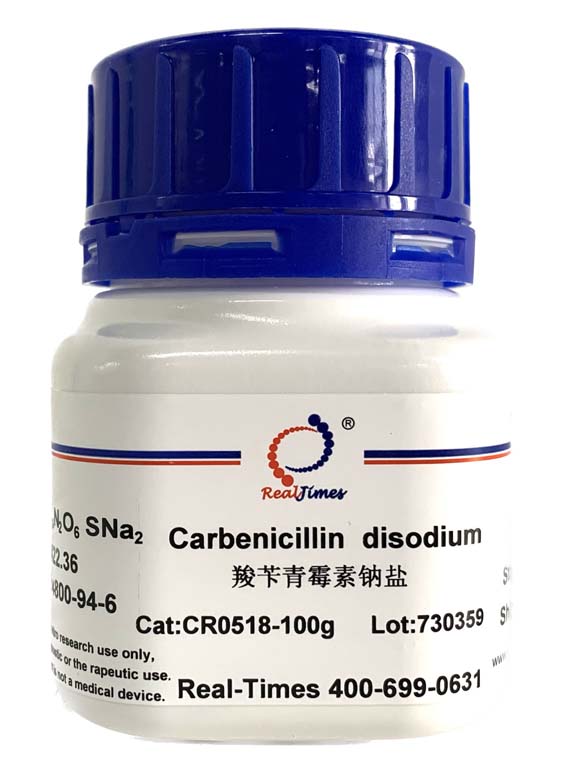 Carbenicillin disodium is a semi-synthetic β-lactam antibiotic that is related to penicillin. Its bactericidal mode of action is analogous to that of benzylpenicillin, which acts on bacteria by inhibiting bacterial cell wall synthesis. Relative to benzylpenicillin, carbenicillin has a relatively greater spectrum of activity against Gram-negative bacteria such as Pseudomonas aeruginosa, but a lower activity against Gram-positive bacteria. Commonly used for the elimination of Agrobacterium species after inoculation.