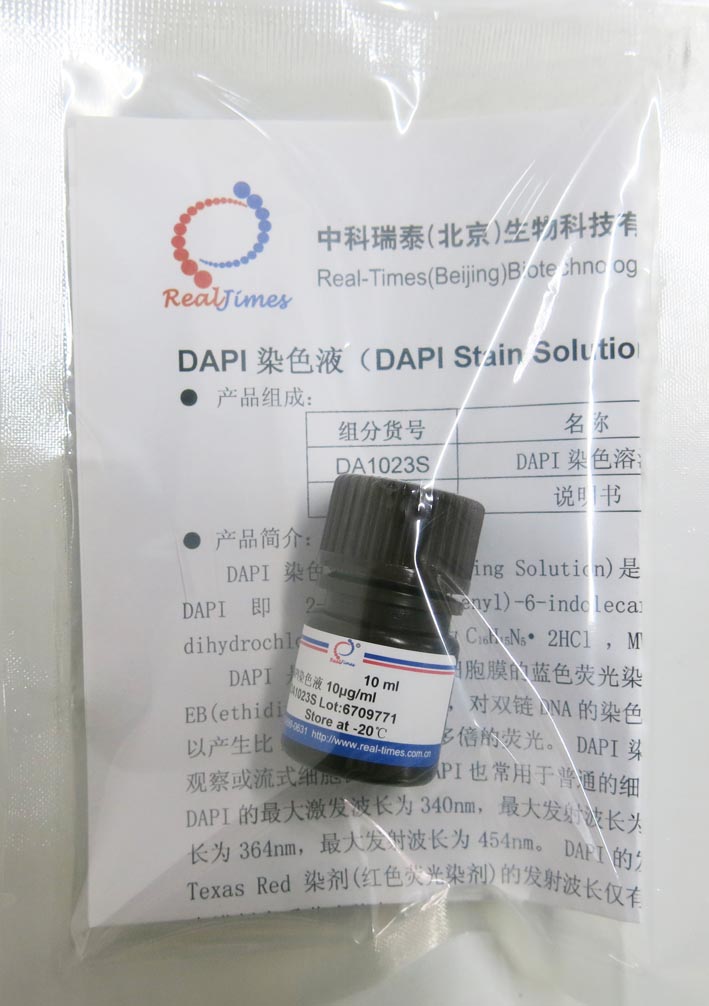 DAPI染色液(DAPI Staining Solution)是適用于常見細胞和組織細胞核染色的染色液。 DAPI即 2-(4-Amidinophenyl)-6-indolecarbamidine