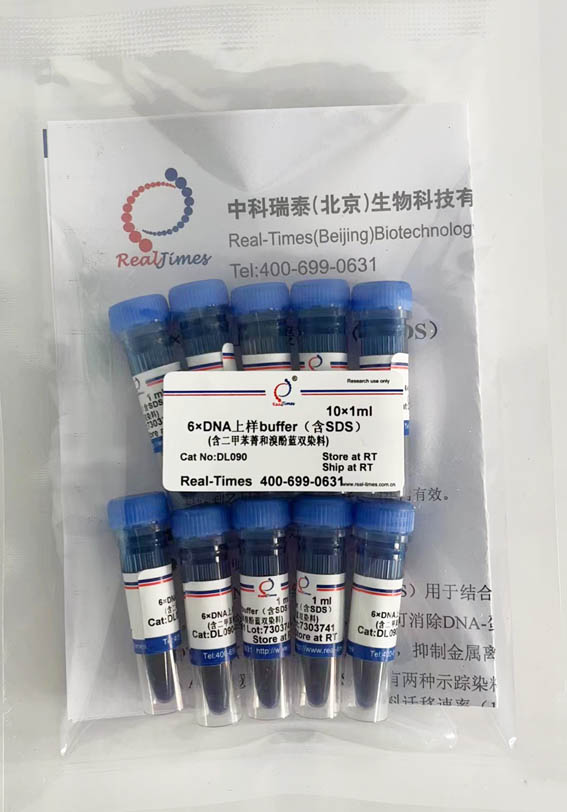 mM EDTA,它可結合二價金屬離子,抑制金屬離子依賴的酶反應,從而保護DNA。6×DNA上樣緩沖液(含SDS)含有兩種示蹤染料:溴酚藍和二甲苯菁FF。