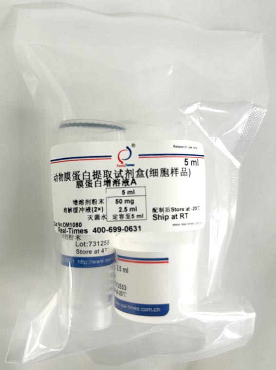 該產品配套動物膜蛋白提取試劑盒(貨號:RTD8111,RTD8112)和動物線粒體提取試劑盒(貨號:RTD8115,RTD8116)使用。含有終濃度1%去垢劑DDM(n-Dodecyl