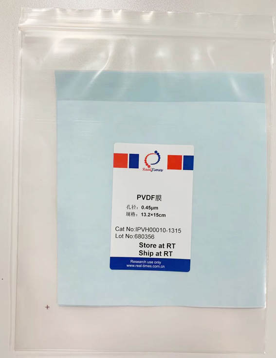 聚偏二氟乙烯(Polyvinylidene Fluoride,PVDF)膜作為基質的轉印膜時由Millipore公司在1985年首先推出的。PVDF膜在蛋白質截留能力、機械強度和化學相容性上比起NC膜來都有更好的優越性能。例如,PVDF膜的蛋白結合量是100-200μg/cm2,而NC膜的典型結合量是80-100μg/cm2。PVDF膜分0.45μm和0.2μm的,后者孔徑小,對小分子蛋白(<20kD)有較好的攔截吸附。