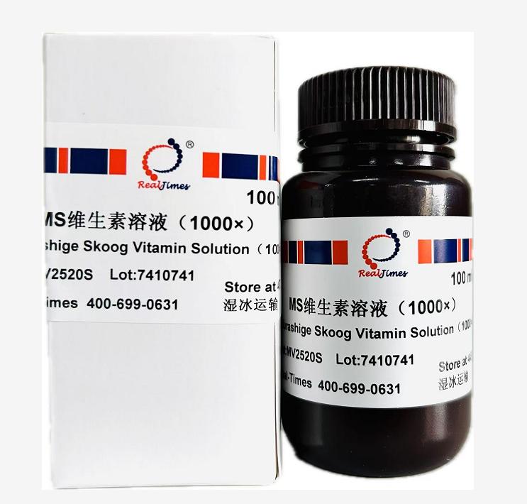 MS維生素溶液是培養(yǎng)基組份中維生素的單獨(dú)混合物,濃度為1000×,該溶液已經(jīng)抽濾除菌,可以直接添加到培養(yǎng)基中,建議1升培養(yǎng)基中加入1 ml MS維生素溶液。