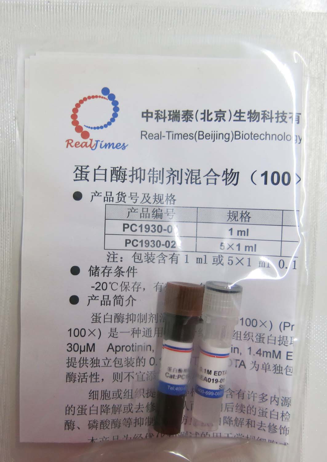 30μM Aprotinin, 1 mMBestatin,1.4mME64 and 1mMLeupeptin in DMSO),并提供獨立包裝的0.1MEDTA。EDTA為單獨包裝,以便選擇性使用。如用于檢測金屬蛋白酶活性,則不宜添加EDTA。