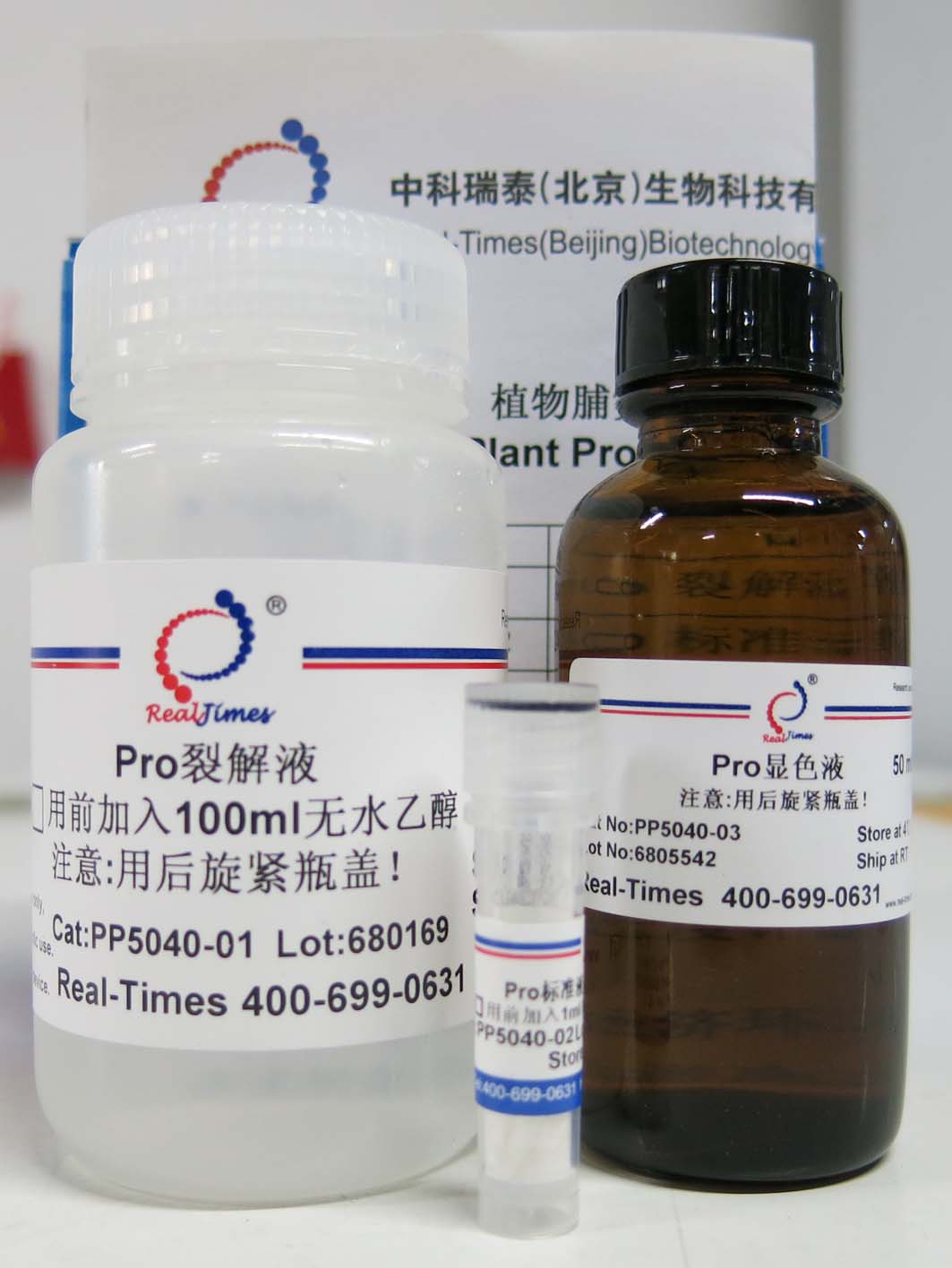取1ml 試劑1-Pro裂解液全部加入到試劑2-Pro標準液的小管中,混勻后徹底溶解,即配成的Pro標準液(100mg/ml)。