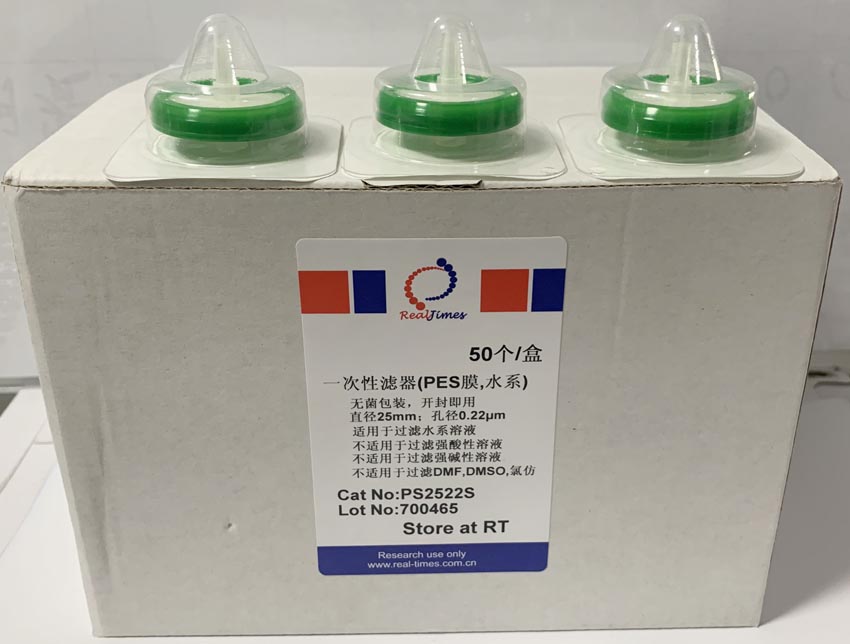 一次性濾器(直徑25mm,孔徑0.22um,水系,PES膜,獨立包裝)
