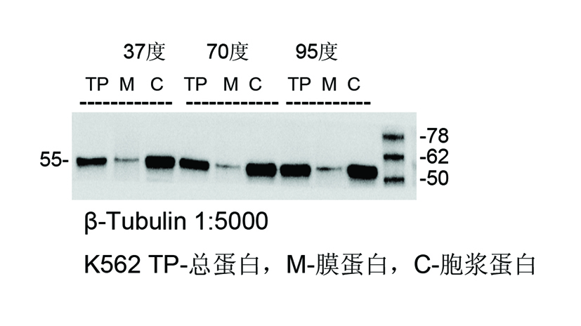 樣品:K562細胞,膜蛋白提取試劑盒提取膜蛋白(M)和胞漿蛋白(C),RIPA提取總蛋白(TP)