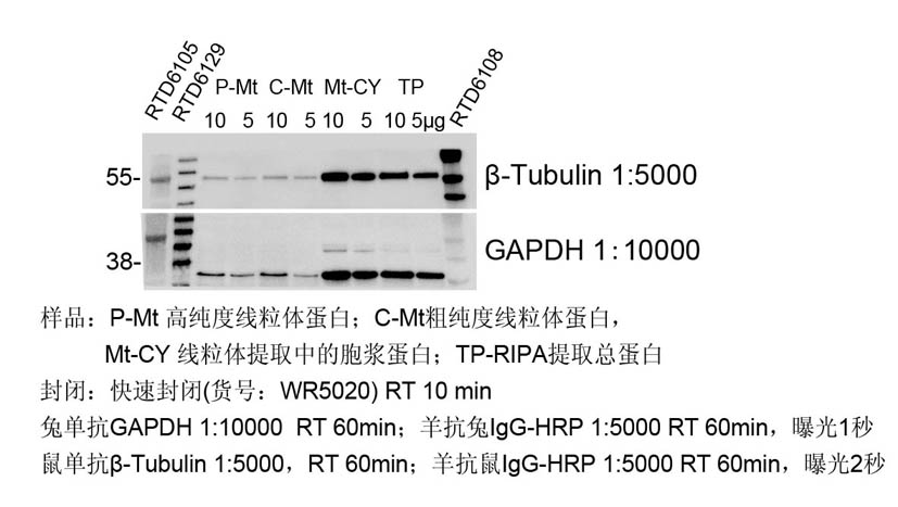 一抗:鼠單抗β-Tubulin 1:5000,常溫搖床孵育60min