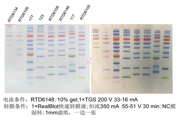 轉移效率高:快速轉膜液對分子量跨度較大的蛋白也有很好的轉移效率,有效解決了大小蛋白不能在同一張膜上同時轉移的問題。