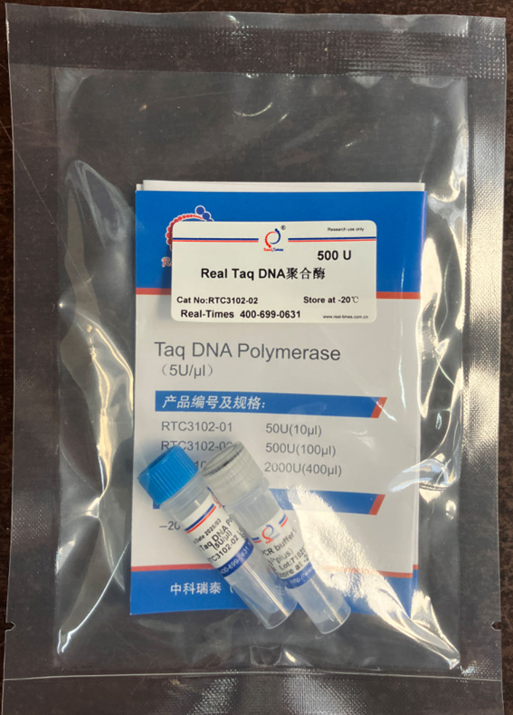 DNA Polymerase是從克隆有Thermu aquaticus DNA Polymerase基因的大腸桿菌經誘導表達后分離純化的,其分子量為94 KD。具有5’-3’DNA聚合酶活性和5’-3’外切核酸酶活性,無3’-5’外切酶活性。在PCR反應中,Real Taq DNA Polymerase延伸速度為1-2 kb/分鐘,產物3’端帶A,可直接用TA載體克隆。