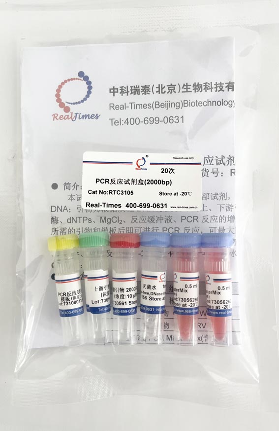PCR MasterMix包含Taq DNA聚合酶、dNTPs、MgCl2、反應緩沖液、PCR反應的增強劑和優化劑以及穩定劑。使用時,只需補加實驗所需的引物和模板后即可進行PCR反應,可最大限度的減少人為誤差,具有快速簡便、穩定性好等優點。使用本試劑盒進行PCR反應后,PCR產物大小應為2000bp。