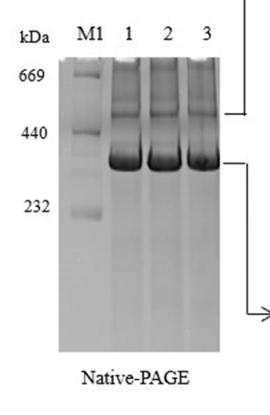 Blue/Clear Native PAGE(BN/CN-PAGE)是一種從生物樣品(質(zhì)膜,胞漿等)中非變性分離蛋白質(zhì)復(fù)合物的電泳技術(shù)。其原理是用溫和去污劑(如 DDM,digitonin)將蛋白復(fù)合體從細(xì)胞膜中以近似天然的狀態(tài)分離出來(lái),Blue Native PAGE (BN-PAGE)是用考馬斯亮藍(lán) G-250 代替 SDS與蛋白結(jié)合而使其帶負(fù)電荷,根據(jù)蛋白分子量不同在 PAGE膠中得到分離;Clear Native PAGE(CN-PAGE)是電泳緩沖液中不加入任何染料,電泳中始終保持蛋白的天然電荷和活性狀態(tài),然而,其蛋白的分辨率要低于Blue Native PAGE。另外,BN-PAGE由于考馬斯亮藍(lán)G-250存在,使蛋白都覆蓋上負(fù)電荷,可以分離堿性蛋白(pI>7);而CN-PAGE只適合于酸性蛋白(pI<7)的分離。