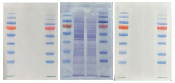 1.1 電泳結(jié)束后,將膜用超純水震蕩漂洗3次,每次2分鐘,徹底去除膜表面的任何殘余物質(zhì),這些物質(zhì)可能會(huì)影響染料和蛋白的結(jié)合。