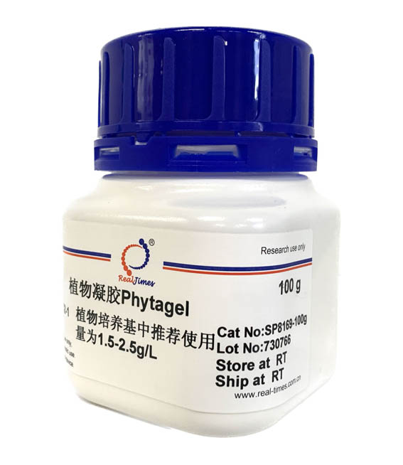 Phytagel又名Gellan gum,Gelrite。是一種瓊脂的替代物,是細菌(假單孢菌Pseudomonas elodea)經過發酵生產的,含有葡萄糖醛酸、鼠李糖和葡萄糖等物質,具有無色、透亮和高韌性的特點,是配制植物組織培養基和微生物培養基的主要成分。由于其克服了傳統瓊脂在植物組織培養中的固有缺陷為植物學研究帶來了一場新的革命,已經成為了國際公認的植物組培首選產品。